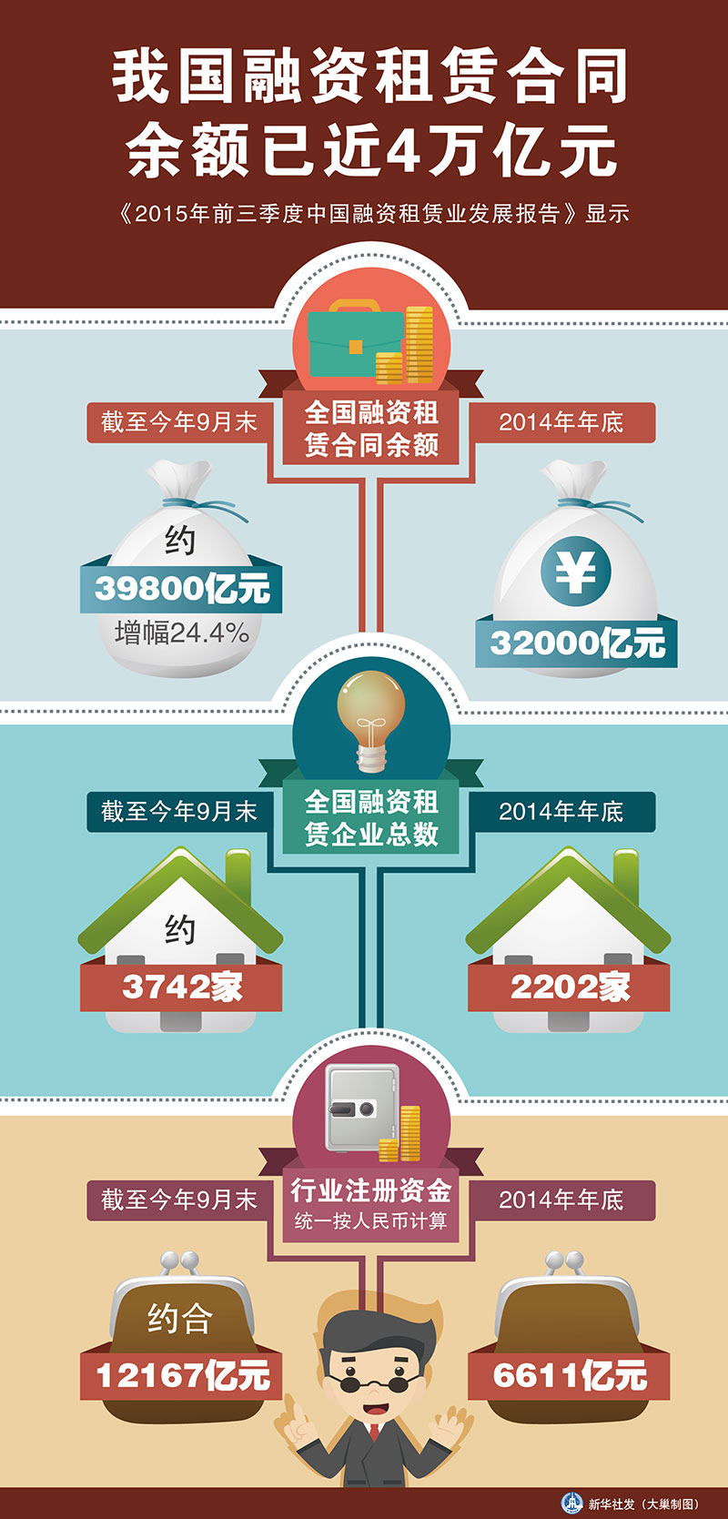 图表:我国融资租赁合同余额已近4万亿元 新华社发 大巢制图