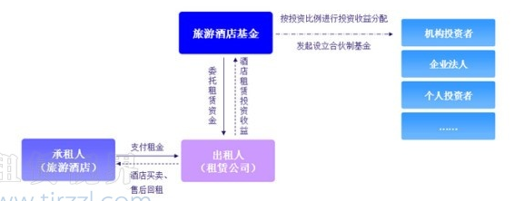 在与基金合作方面,产业基金募集资金委托融资租赁公司投资酒店项目建设或酒店资产售后回租业务,并从中获取投资溢价,租赁公司得到中间收入。