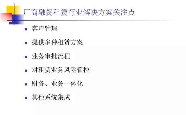 2、如何搞好项目评估对于租赁业来说,要发展租赁企事业恢复正常经营,充分发挥其综合经济效益和社会效益,加强对项目的科学评估和管理是当前租赁公司经营管理中十分重要的经营决策。中小企业融资租赁也像投资一样,需要考虑效益和风险。为了取得利益降低风险可能带来的损失,出租人和承租人都要对项目整体的现状和未来,进行全方位、多层次、多变量的科学评估。承租人评估项目的主要目的是考虑在中小企业融资租赁的条件下,核算扣除中小企业融资成本后的收益能否达到预期目标,争取最大限度地减少投资风险。出租人主要评估承租人的还款能力,负债能力,资金回收的安全性和项目的可行性减少租金回收风险。