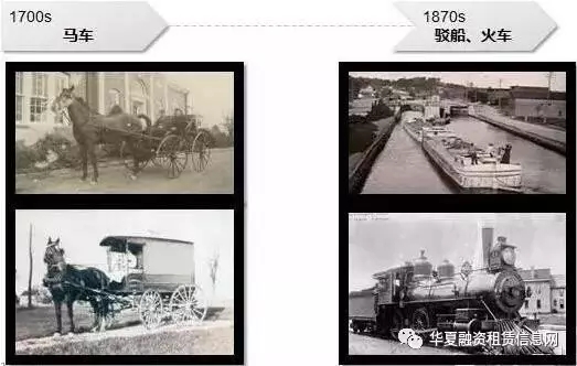 马车:美国18世纪的淘金时代,横跨全国、从东部到西部的运输主要通过马车,马车租赁是当时设备租赁的主要标的物。