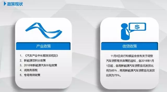 其实很多政策2015年都有了,意见稿只是小范围发,今年正式发放了,所以不断的有措施,在信贷方面,有很大的调整,这个调整就像刚才我说的,在2015年年底的时候,实际上已经小范围的发了征求意见稿,当时我在汽车金融公司,对这些政策意见当中的数据包括一些政策我们也做了一些讨论和建议,最终出来的结果跟我们想象中的还是比较相似的,就是新能源汽车和整体的燃油车在信贷方面做了比较大的区分,整个贷款比例上面,就是新能源汽车会比传统的燃油车贷款比例,包括自用和商用都会高5个百分点。在政策支持上,国家的力度还是非常大的。