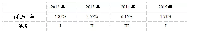 I级:不良资产比率<2%,资产质量很高,管理经验充足,内部控制完善,风险暴露于资本保护和管理能力相适应。